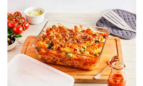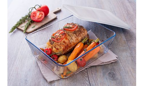 Multifunctionele ovenschaal in borosilicaatglas perfect geschikt voor het klaarmaken van gerechten in microgolf en oven. Het handige vershouddeksel maakt de schaal ook geschikt voor het bewaren van voeding in de koelkast of diepvries. Beschikbaar in verschillende vormen en meerdere afmetingen.