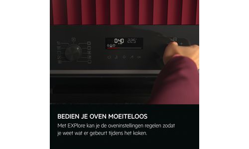 Met EXPlore kun je moeiteloos de instellingen van je oven regelen, zodat je weet wat er tijdens het kookproces gebeurt. Met het led-display, 5 toetsen en 2 draaiknoppen kun je de tijd, temperatuur en voortgang van je gerecht gemakkelijk opvolgen.